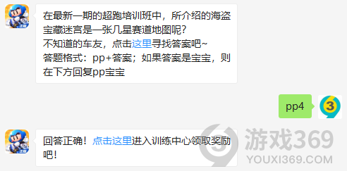 在最新一期的超跑培训班中,所介绍的海盗宝藏迷宫是一张几星赛道地图呢?答题格式:pp+答案,11月20日跑跑卡丁车每日一题的答案是什么?不知道的车主宝宝们,进来看看正确答案吧!回答正确即可领取皮蛋为大家准备的丰厚奖励了跑跑卡丁车11月20日问题:在最新一期的超跑