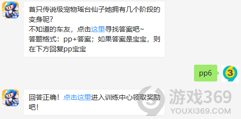 首只传说级宠物瑶台仙子她拥有几个阶段的变身呢?答题格式:pp+答案,11月15日跑跑卡丁车每日一题的答案是什么?不知道的车主宝宝们,进来看看正确答案吧!回答正确即可领取皮蛋为大家准备的丰厚奖励了跑跑卡丁车11月15日问题:首只传说级宠物瑶台仙子她拥有几个阶段的
