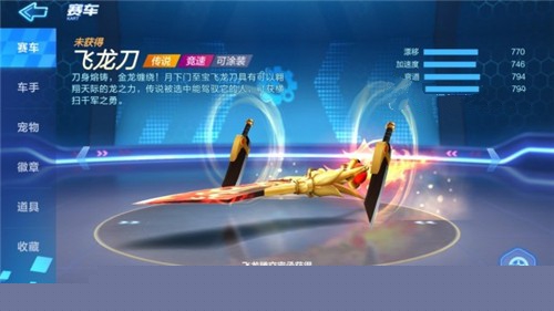 跑跑卡丁车手游飞龙刀属性如何?传说赛车类型,竞速体验提升。小编带来车辆详情,完成在线升级!飞龙刀属性与跑图数据详解飞龙到和银月剑一样是一个武器类型的赛车,他是一辆传说级竞速赛车,喷气时刀身会泛起红光,并有两个小刀在刀身周围旋转,非常的酷炫。属性:漂移770、加