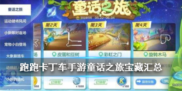 跑跑卡丁车手游童话之旅宝藏在什么地方?童话之旅是跑跑卡丁车在S6赛季开启的每日宝藏任务玩法,那么其中彩虹之门、皮蛋和豆树、旋转木马等宝藏都在什么地方呢?接下来就让小编带着大家一起来看看吧!跑跑卡丁车手游童话之旅宝藏汇总一、任务介绍第一天:城镇极速竞技场参与1局多人竞速;第二天:皮蛋和豆树参与1局道具赛;第三天:在彩虹之门找到隐藏的宝藏;第四天:在旋转木马找到隐藏的宝藏。地图:旋转木马(L3简单)建
