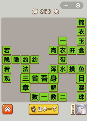 最近很多小伙伴都在问微信成语中状元第258关怎么过,本次给大家带来的是微信成语中状元第258关答案!微信成语中状元第258关答案锦衣玉食:锦衣:鲜艳华美的衣服;玉食:珍美的食品。精美的衣食。形容豪华奢侈的生活。宵衣旰食:宵:夜间;衣:穿衣;旰:天已晚。天不亮就