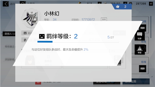 在游戏中的好友系统里存在一个羁绊的机制,当玩家投掷螺母的时候便会产生,那么这个羁绊有什么用呢?今天小编就为大家带来战双帕弥什羁绊等级作用介绍,感兴趣的小伙伴一起来看看吧!战双帕弥什羁绊等级作用介绍首先大家可以观察上图,上面显示在羁绊等级为2的情况下,与其组队能