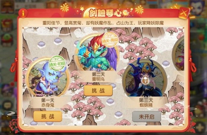 剑胆琴心活动怎么玩?这是重阳节活动之一,玩家们需要完成每天的挑战才能领取奖励,感兴趣的玩家们就一起来看看吧!剑胆琴心:重阳登高,平妖除魔重阳节,正是登高远眺的好时机。为了能让三界众生享受假期,玩家也将向占山为王的妖魔发起挑战。在10月8日~10月14日期间,玩