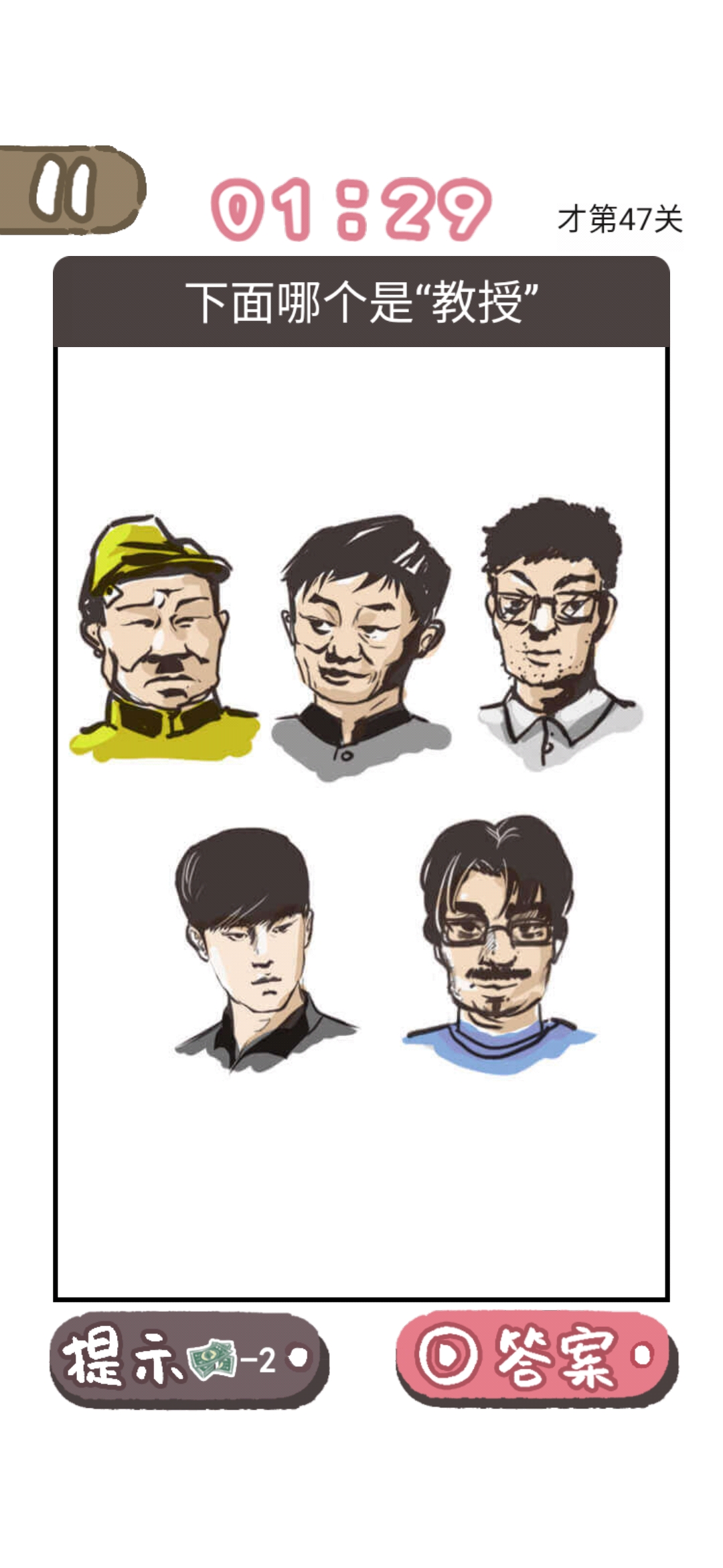 我太难了老铁是一款网络用语改编的大脑洞手游,在游戏中玩家会遇到许多的谜题,这些谜题的答案跟生活紧密相连,不仅要脑洞够大,思路清晰,还要知道需要梗,也能够考验玩家的细心程度,超多有趣的游戏关卡等你来挑战,带你感受游戏的畅快体验,那么我太难了老铁第47关怎么过?那么下面就给大家带来下面哪个是“教授”快速通关攻略一览,感兴趣的玩家朋友们千万不要错过。我太难了老铁第47关通关攻略问题下面哪个是“教授”?答