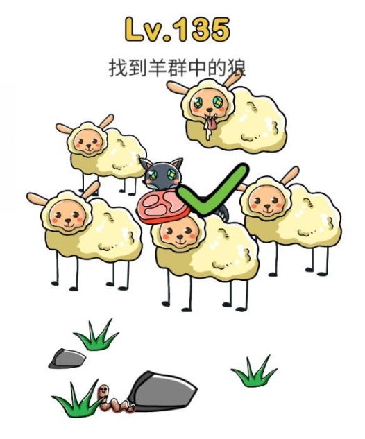 脑洞大师是一款休闲火爆的脑洞关卡游戏,游戏中有许多奇怪的题目等你来挑战,这可不是正经的题目,需要你打开脑洞,找到答案,那么找到羊群中的狼,脑洞大师第135关怎么过?快和小编一起来看看这篇brain out找到羊群中的狼通关答案一览,相信对大家有所帮助。题目:找到羊群中的狼正确答案:狼是吃肉的,将肉移到羊群中,狼会露出本性哦脑洞大师算得上是一款适合儿童的游戏,毕竟收到条条框框拘束的成年人,很容易被各