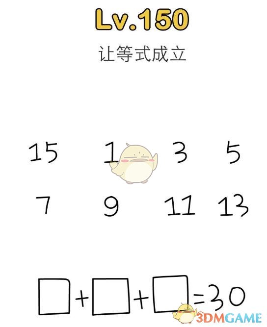 脑洞大师是一款休闲火爆的脑洞关卡游戏,游戏中有许多奇怪的题目等你来挑战,这可不是正经的题目,需要你打开脑洞,找到答案,那么让等式成立:?+?+?=30,脑洞大师第150关怎么过?快和小编一起来看看这篇brain out让等式成立:?+?+?=30通关答案一览,相信对大家有所帮助。题目:让等式成立:?+?+?=30答案:6+11+13=30.可能很多玩家想了半天也没有想明白,怎么出来的这个答案,实际