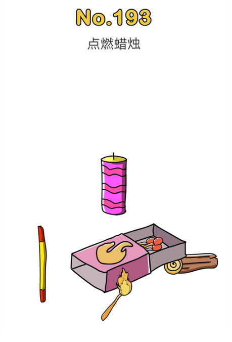 脑洞大师是一款休闲火爆的脑洞关卡游戏,游戏中有许多奇怪的题目等你来挑战,这可不是正经的题目,需要你打开脑洞,找到答案,那么点燃蜡烛,脑洞大师第193关怎么过?快和小编一起来看看这篇brain out点燃蜡烛通关答案一览,相信对大家有所帮助。题目:点燃蜡烛正确答案:这一关难度不大,直接把火柴盒放大,然后取出火柴在盒子边上摩擦点火,最后点染蜡烛即可。脑洞大师算得上是一款适合儿童的游戏,毕竟收到条条框框
