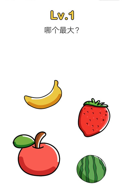 脑洞大师是一款休闲火爆的脑洞关卡游戏,脑洞大师第1关怎么过?想必很多的小伙伴们都不是很清楚,那么接下来,就跟随游戏爱好者小编一起来看一下BrainOut第1关快速通关答案一览吧!感兴趣的小伙伴一定不要错过哦!题目:哪个最大正确答案:西瓜虽然在下图中四个水果苹果