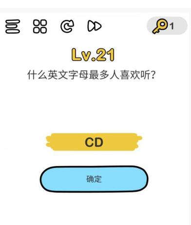脑洞大师是一款休闲火爆的脑洞关卡游戏,脑洞大师第21关怎么过?想必很多的小伙伴们都不是很清楚,那么接下来,就跟随游戏爱好者小编一起来看一下BrainOut第21关快速通关答案一览吧!感兴趣的小伙伴一定不要错过哦!题目:什么英文字母最多人喜欢听正确答案:CD这个