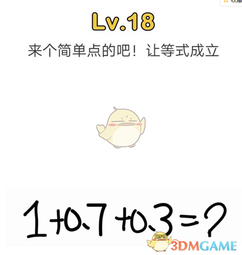脑洞大师是一款休闲火爆的脑洞关卡游戏,脑洞大师第18关怎么过?想必很多的小伙伴们都不是很清楚,那么接下来,就跟随游戏爱好者小编一起来看一下BrainOut第18关快速通关答案一览吧!感兴趣的小伙伴一定不要错过哦!题目:来个简单点的吧!让等式成立正确答案:直接将