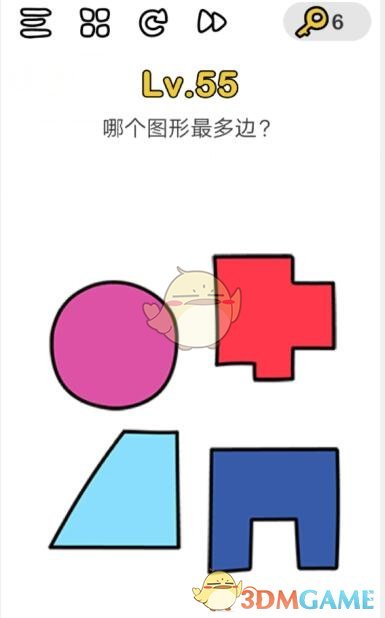 脑洞大师是一款休闲火爆的脑洞关卡游戏,脑洞大师第55关怎么过?想必很多的小伙伴们都不是很清楚,那么接下来,就跟随游戏爱好者小编一起来看一下BrainOut第55关快速通关答案一览吧!感兴趣的小伙伴一定不要错过哦!题目:那个图形最多边正确答案:点击第一个图形【圆