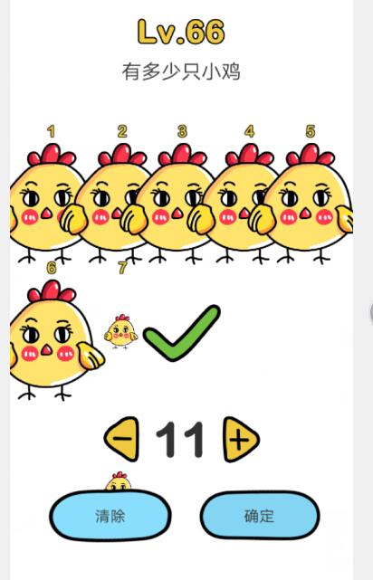 脑洞大师是一款休闲火爆的脑洞关卡游戏,脑洞大师第66关怎么过?想必很多的小伙伴们都不是很清楚,那么接下来,就跟随游戏爱好者小编一起来看一下BrainOut第66关快速通关答案一览吧!感兴趣的小伙伴一定不要错过哦!题目:有多少只小鸡正确答案:11这一关大家开始可