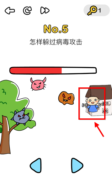 脑洞大师是一款休闲火爆的脑洞关卡游戏,游戏中有许多奇怪的题目等你来挑战,这可不是正经的题目,需要你打开脑洞,找到答案,那么,脑洞大师消灭病毒第5关怎么过?快来看看这篇怎样躲过病毒攻击通关答案一览,相信大家一定会有新的认识。脑洞大师消灭病毒第5关通关攻略题目:怎样躲过病毒攻击正确答案:直接将小男孩移动到房子里即可。这一关和消灭病毒第三关异曲同工,待在家里就是最好的防范!脑洞大师算得上是一款适合儿童的