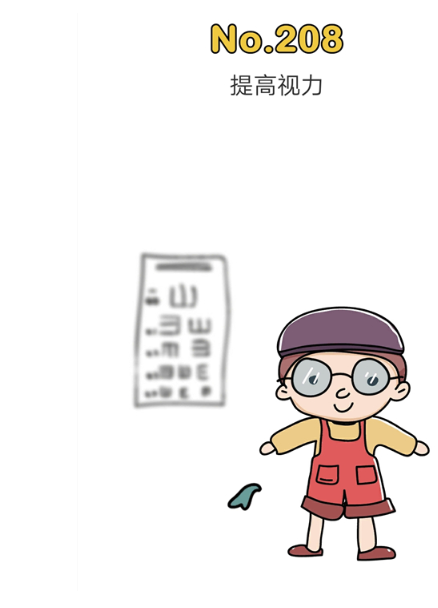 脑洞大师是一款休闲火爆的脑洞关卡游戏,游戏中有许多奇怪的题目等你来挑战,这可不是正经的题目,需要你打开脑洞,找到答案,那么提高视力,脑洞大师第208关怎么过?快和小编一起来看看这篇brain out提高视力通关答案一览,相信能帮助大家了解。题目:提高视力正确答案:这一关需要先将人物身上的眼镜布拿出来,然后擦拭眼镜,眼镜清楚了,视力也提高了脑洞大师算得上是一款适合儿童的游戏,毕竟收到条条框框拘束的成
