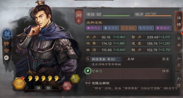 钟会是后三国时代的名人之一,身为钟繇的幼子在书法造诣颇高的同时,军事才能也及其出色,并和邓艾一同攻破了蜀国。在之后的反叛中虽然功亏一篑,但这并不能掩盖其出色的才能。接下来就让我们一起来看一看游戏中钟会的使用攻略吧。在《三国志·战略版》中,钟会是一位兼备控制的输