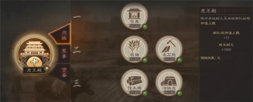 在中,主公需要进行城池建设发展来提升自身的内在实力,而城建也会消耗主公大部分的资源,所以城建发展并非一朝一夕能解决。这一期我们就来说说游戏中的城建基础知识。一、城建类型与解锁主公在进入城池后点击“城建”可以打开城建操作界面。城建的主体是“君王殿”,其次分了三个