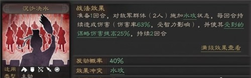 在中,战法之间互相搭配都会产生不一样的效果。其中S级战法【沉沙决水】是一个出色的水攻状态谋略群体战法,接下来就让我们一起来了解一下吧。一、沉沙决水介绍与来源沉沙决水:准备1回合,对敌军2人施加水攻状态,每回合持续造成伤害,并使其受到的谋略伤害提升,持续2回合。