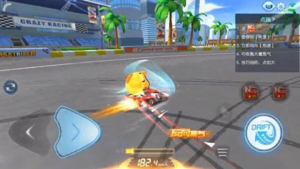 跑跑卡丁车手游中,漂移是必须要用的技巧,那么游戏中玩家该怎么漂移,有哪些情况,下面一起来看看吧。 跑跑卡丁车手游反向集气技巧攻略 反向集气 操作方式:在使用N2O之后,按下方向键和漂移键,但第一次漂移角度不需要很大,30度到50度之间,随后不松漂移