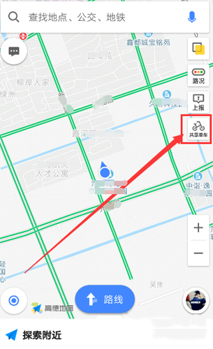 共享单车是我们常用的功能之一,而现在这个功能在高德地图中就能找到。那么我们怎么通过高德地图使用共享单车呢,下面让我们一起来看看吧。 使用方法介绍: 1、首先下载高德地图最新版,然后选择【路线】: 高德地图主界面 2、选择之后即可看到【共享单车】