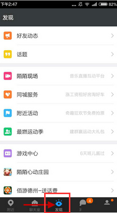 陌陌的广告语:“别和陌生人说话,别做新鲜事,继续过平常的生活,最好待在家里,心思别太活 ,梦想要实际,就这样活着吧”。有时颓废的时候想想还觉得挺对的。陌陌的交友功能确实很强大,其中很重要一点就是地点漫游功能。陌陌地点漫游怎么设置 1、打开陌陌,选择【发现】栏的