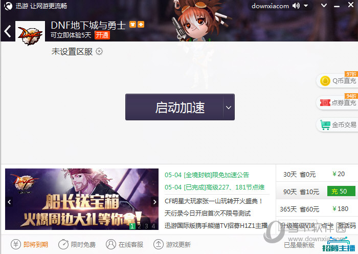 怎么加速不了DNF?有很多迅游用户在加速地下城与勇士时,却发现加速失败的情况,下面通过这篇文章给大家讲解一下怎么处理。迅游游戏加速器使用教程==》怎么用迅游加速DNF失败解决方法方法一:迅游加速器是付费使用的,如果您的电脑从未使用过迅游,首次加速是可以获得5天
