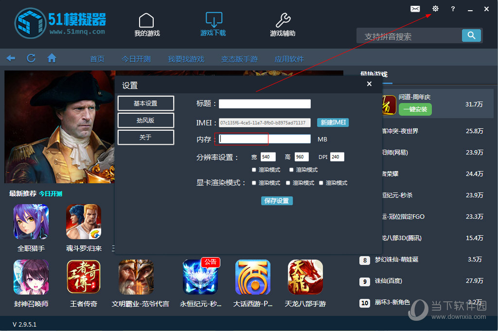 当大家使用51模拟器时,因需求要修改其中的内存,怎么操作呢?小编给大家带来了,希望可以帮到大家。 方法一:1、首先打开电脑中的51模拟器大厅,然后在其界面右上角打开“设置”; 2、接着在“设置”窗口的左侧打开“劲风版”,在“劲风版”界面就可以看到51模拟器“内