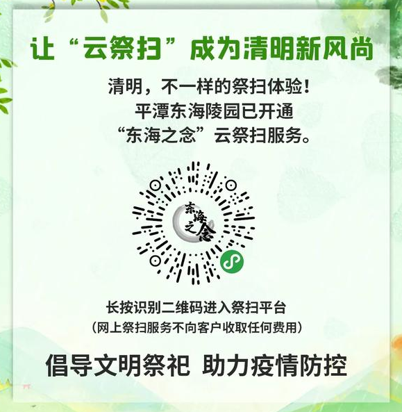 最近很多东海网友表示自己不清楚怎么用微信公众号在网上祭扫,而本篇文章就来给大家讲解微信公众号东海云祭扫流程,大家都来一起学习吧。如何进行网上祭扫?预约教程微信搜索“东海之念”小程序主界面,或者扫描下方二维码点击“云祭扫”,进入园区,选择亲人所在的园区,然后输入亲人的墓位编号,点击”进入“,即可找到亲人所在的墓位。小编寄语借助网络平台,给先人点上一支蜡烛、献上一束鲜花、写上一段寄语、制作一张思念卡片