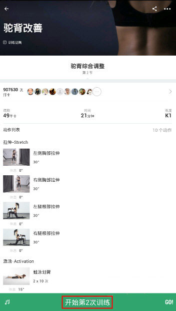 KEEP在我们使用的时候,会有大量的视频消耗我们的流量,那么我们如何才能下载KEEP中的视频节省流量呢?下面就让小编为大家介绍一下KEEP中下载视频的方法吧。一、单个训练视频下载:在单次训练详情介绍界面中,点击界面下方的“开始第N次训练”。二、全部训练视频下载