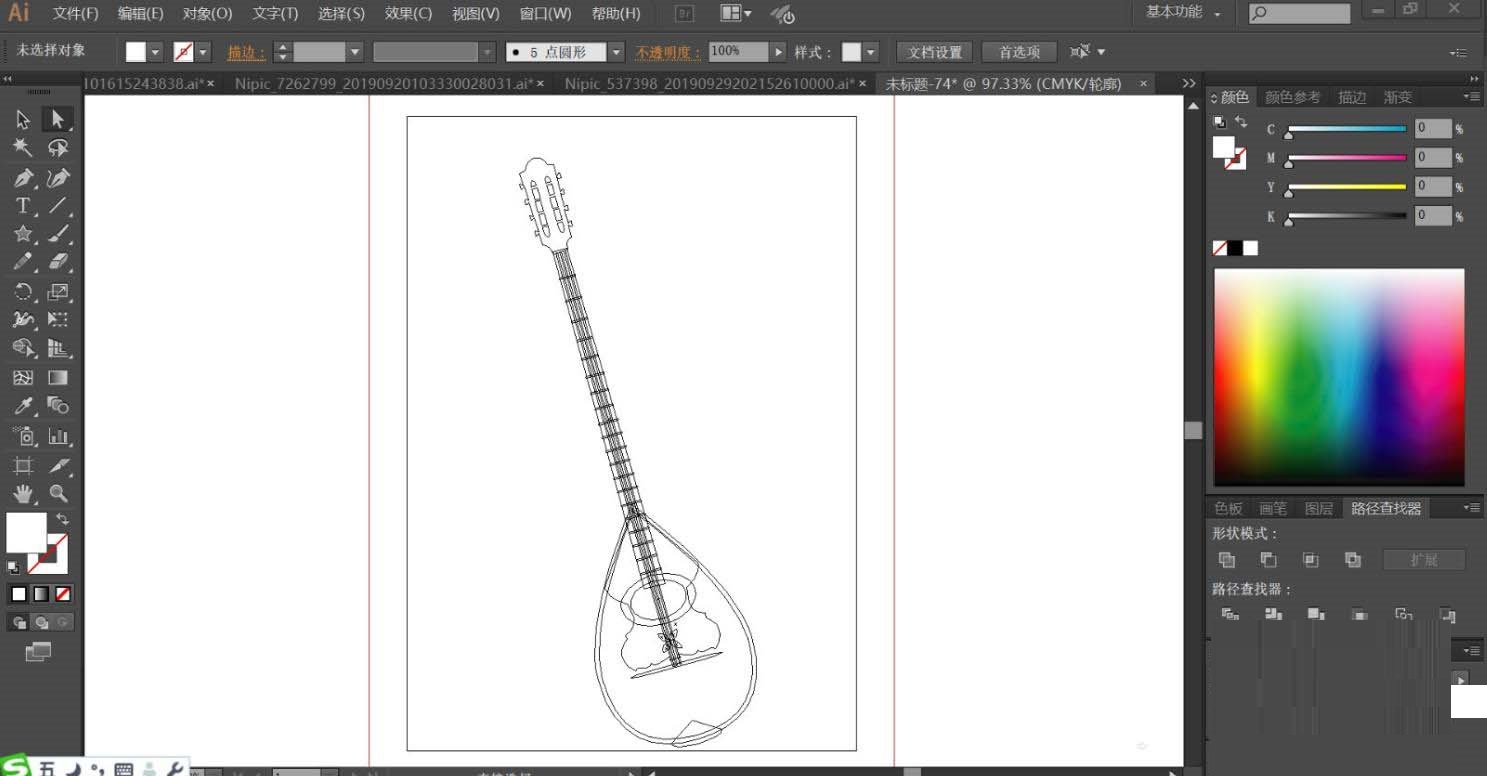 AI操作简单,功能强大,可以利用钢笔工具做出不失真的矢量绘图,目前基本上已经成为桌面出版业界的默认标准,本文教各位新手朋友们曼陀铃这种弹拨乐器的绘制设计步骤,一起来学习一下吧!1、使用钢笔画出弹拨乐器的顶端琴弦结构件,再画出下方的手柄细节路径,继续画出圆形的木箱表面结构件与色彩明暗路径。最后,使用直线工具画出琴弦的细节路径。2、使用咖啡色的渐变填充弹拨乐器的顶端结构件,再复制路径并放到底层填充黑色