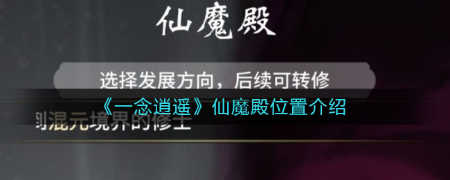 一念逍遥的游戏中仙魔殿作为一个非常重要的一个建筑,那么它的具体位置在什么地方呢?对此,游戏爱好者小编特意为大家准备了这边详细的内容攻略,让我们一起来看看吧! 《一念逍遥》仙魔殿位置介绍首先大家要达到返虚/破虚后期,化解心魔且魔气遮天结束后。可获得仙魔之心解锁仙魔殿,体验仙魔相关内容。在早期修炼中,各位仙友都有自己的修炼方式,可以选择体修,或法修,抑或双修。选择不同的道路,拥有不同的战斗体验。而在仙