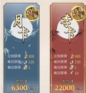 月卡作为很多游戏中都有的一个氪金选择,在一念逍遥中自然也是存在的,那么游戏中的月卡性价比到底怎么样呢?可能还有很多小伙伴不清楚这个问题,不过没有关系小编给大家准备了相关的详细内容来帮助大家更好的了解,下面让我们一起来看看吧。一念逍遥月卡奖励一览:一经购买可以获得300个天命、120个机缘和1个造化图。天命可以在拍卖行竞拍物品,也可以直接兑换为机缘。机缘可以打破命运的桎梏,是超脱于天地的造化之物,且