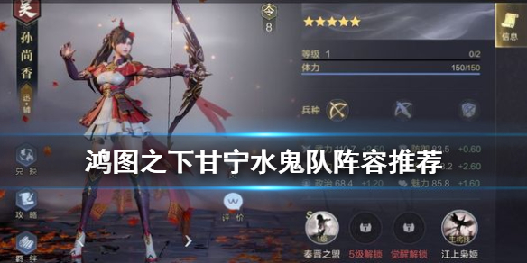 鸿图之下水鬼队阵容应该怎么搭配,在鸿图之下中,搭配不同的武将羁绊可以衍生出各种各样的阵容,其中甘宁就可以搭配合适的武将来组成水鬼队,那么具体应该怎么做呢?很多小伙伴对这方面的内容还不是很了解,为此,小编特地为大家整理了这些内容,一起往下看看吧!鸿图之下甘宁水鬼队阵容推荐主将:甘宁,进阶兵种:狂斧兵,自带技:锦帆贼,技能一:推波助澜,技能二:辕门射戟,主公技:惊涛骇浪。副将一:孙权进阶兵种:藤甲兵自