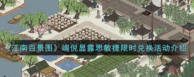 江南百景图手游中的端倪显露思敏捷限时兑换活动是即将上线的新活动,下面,游戏爱好者小编就为大家准备了关于这方面的详细攻略,一起来看看吧!端倪显露思敏捷限时兑换活动介绍【活动时间】11月15日至11月17日【活动内容】消耗补天石,兑换【线索】。*注意适度消耗补天石,若已拥有足够【线索】,请勿过多兑换。好了,今天的江南百景图分享就到这里了,想要查看更多资讯攻略就来游戏爱好者