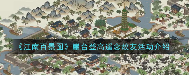 江南百景图手游中的崖台登高遥念故友活动作为新上线的活动玩法,那么具体应该怎么参加呢?对此,不了解的小伙伴,那就快来看看小编给大家准备的相关游戏内容吧!崖台登高遥念故友活动介绍活动介绍:5月14日-5月18日,【点笔成章杯酒中】铜钱抽奖活动开启;5月16日-5月18日,补天石兑换金画轴折扣开启;5月16日-5月22日,【崖台南望思故人】累消福利开启。累计消耗补天石,即可领取 黄泥、金画轴、崖松辞青