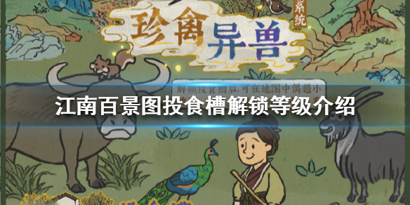江南百景图投食槽几级解锁,在江南百景图的游戏中投食槽作为最新上线的新建筑,玩家应该怎么解锁呢?可能还有很多小伙伴不清楚这个问题,不过没有关系小编给大家准备了相关的详细内容来帮助大家更好的了解,下面让我们一起来看看吧。江南百景图投食槽解锁等级介绍一、等级介绍15级解锁,建造后便可解锁「珍禽异兽」系统!二、玩法介绍城镇或郊外探险地图中皆可偶遇小动物,大人们可以将其邀请回城中喂养~目前推出的小动物有:喜