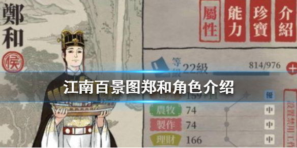 江南百景图郑和推荐指数有几颗星?郑和下西洋的故事大家都听说了吧,那么在江南百景图手游中郑和到底强不强呢,下面就跟小编来一起看看吧。江南百景图郑和角色介绍天赋-远航:探险队体力回复速度加快15%。偏理财、建造、冒险取向。天赋效益可能对于在有探险大型活动稍微显现出价值。五围很惨,最高的三围中只有理财较实用,其他建造、冒险这两项较为冷门。如果要做这两项工作时,其实有其他比郑和更好更好用的角色可以取代,比