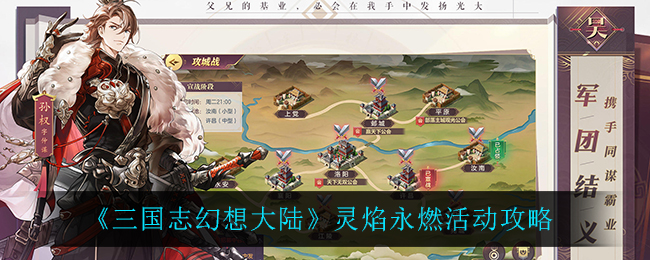 三国志幻想大陆最近上线了全新的灵焰永燃活动,那么具体应该怎么玩呢?关于这个小编已经帮大家准备好了相关内容,希望可以帮助到大家,快来和小编一起来看看吧。《三国志幻想大陆》灵焰永燃活动攻略活动时间:2021年11月11日5:00-2021年11月18日4:59公示期时间:2021年11月18日5:00~2021年11月19日4:59公示期期间可以进行灵焰召唤与商店礼包的购买(限购数不刷新,与活动结束前