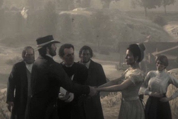 结尾动画剧情讲解约翰与艾比盖尔举行了婚礼,杰克、大叔、查尔斯、莎迪也都正装出席。众人欢快地庆祝这一美好时刻,与此同时另一边……罗斯探员(米尔顿探员的跟班,《荒野大镖客1》的重要角色)来到最终战的地点,找到了迈卡的尸体。庆祝过后,查尔斯离开,众人送行。玛丽·贝思