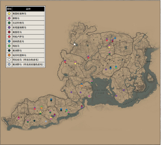 荒野大镖客2马匹都有哪些?它们都怎么获得?想必很多朋友都还不是很清楚吧,所以下面就是荒野大镖客2全马匹获得方法及属性介绍,需要的朋友不妨进来看看。全马匹获得方法及属性介绍以上就是荒野大镖客2马位置高清地图分享,想来大家都了解了吧。关于这款游戏Rockstar