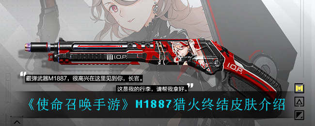 使命召唤手游中M1887猎火终结作为这次活动的武器之一,那么具体应该怎么获得?相信还有很多小伙伴不清楚,对此游戏爱好者小编特地为大家准备了相关的详细内容,让我们一起来看看吧!《使命召唤手游》M1887猎火终结获得攻略1、M1887猎火终结皮肤介绍既然是与少女前线联动的活动,自然也少不了对应的二次元皮肤了。M1887猎火终结皮肤的效果图如下所示,整体以黑红配色为主,枪身上有对应角色的立绘图,是一款质