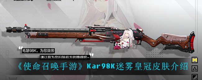 使命召唤手游将会在7月份开启与少女前线的联动活动,那么其中联动皮肤Kar98K迷雾皇冠怎么样,对此,游戏爱好者小编特意为大家准备了这边详细的内容攻略,让我们一起来看看吧!《使命召唤手游》Kar98K迷雾皇冠皮肤介绍1、枪械测评作为一支经典的栓动射手步枪,Kar98k具备着很不错的伤害数值和射程。当交战距离处于40米内时,Kar98k命中手臂、上胸、 头部均能一枪带走。 但受制于栓动式枪机结构的影响