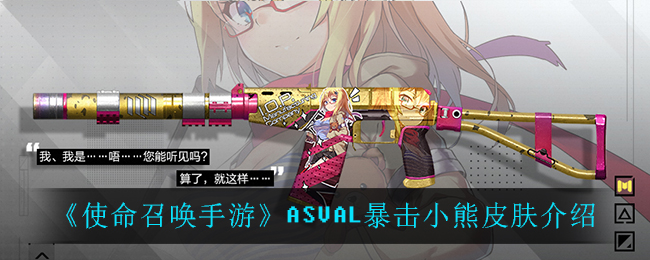 使命召唤手游将会在7月份开启与少女前线的联动活动,那么其中联动皮肤ASVAL暴击小熊到底怎么样,相信还有很多小伙伴不清楚,对此游戏爱好者小编特地为大家准备了相关的详细内容,让我们一起来看看吧!《使命召唤手游》ASVAL暴击小熊皮肤介绍1、枪械测评作为首款使用亚音速子弹,且自带消音器的突击步枪,AS VAL在不同子弹速度下,会有不同程度的子弹下坠效果,这让战士们使用ASVAL在中远距离对枪时,一定要