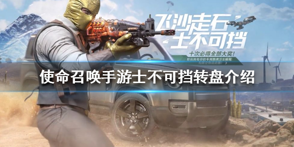 士不可挡转盘作为游戏中最新上线的付费活动,玩家可以通过转盘来获得梅斯-黄金甲面、Type25-磁引擎天和路虎卫士等三款限定奖励。对此,不了解的小伙伴,那就快来看看小编给大家准备的相关游戏内容吧!使命召唤手游士不可挡转盘介绍一、转盘介绍预计士不可挡转盘活动将会在2021年3月上旬结束,活动持续20天左右。士不可挡转盘加入了路虎和梅斯,都是品质比较高的道具。喜欢的玩家可以趁这次机会抽取士不可挡转盘,毕