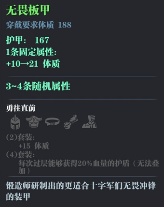 魔渊之刃无畏套装怎么样 无畏套装属性攻略,有哪些途径可以获得无畏套装,具体应该怎么做。为此,小编为大家特地准备这篇更加详细的攻略,快和小编一起来看看吧!魔渊之刃新手套装推荐攻略无畏套每层20%盾可以满足你每层清图时的消耗,而且是主体高额的血量和回复,基本你不是很手残基本到boss满血带盾还有很多药。而且前期体质系暗金装备携带的词条没有很强的,比如法师的包容这种。所以你觉得你很菜,做下这个混图对于