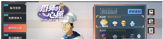 玩家会在航海王热血航线中遇到更多熟悉的角色,招募更多伙伴,参与到更多刺激的战斗,小编今天带你做芒果沙冰,制作这个沙冰需要以下材料,配比为2椰果块+4芒果酱+9冰沙。 航海王热血航线椰肉芒果沙冰配方椰肉芒果沙冰=椰果块x2+芒果酱x4+冰沙x9 简介:沁人心脾,入口即化,本道冷饮的原料配比和为15制作方法 1、玩家先找到活动打开活动后然后点击挑战11制作食材,如图所示。 2、玩家需要准备椰果块x2、