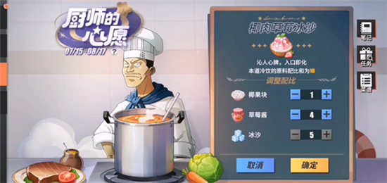 航海王热血航线手游中巧克力草莓冰淇淋作为这次的活动食谱之一,那么具体应该怎么做?对此,不了解的小伙伴,那就快来看看小编给大家准备的相关游戏内容吧!航海王热血航线巧克力草莓冰淇淋配方攻略巧克力草莓冰淇淋=冰淇淋*6+巧克力块*2+草莓酱*2,准备好以上材料之后点击【确定】,即可烹饪出完美的巧克力草莓冰淇淋巧克力草莓冰淇淋:香醇清甜,芳香四溢,原料配比和为10,具体比例为:6:2:2其他配方:椰肉草莓