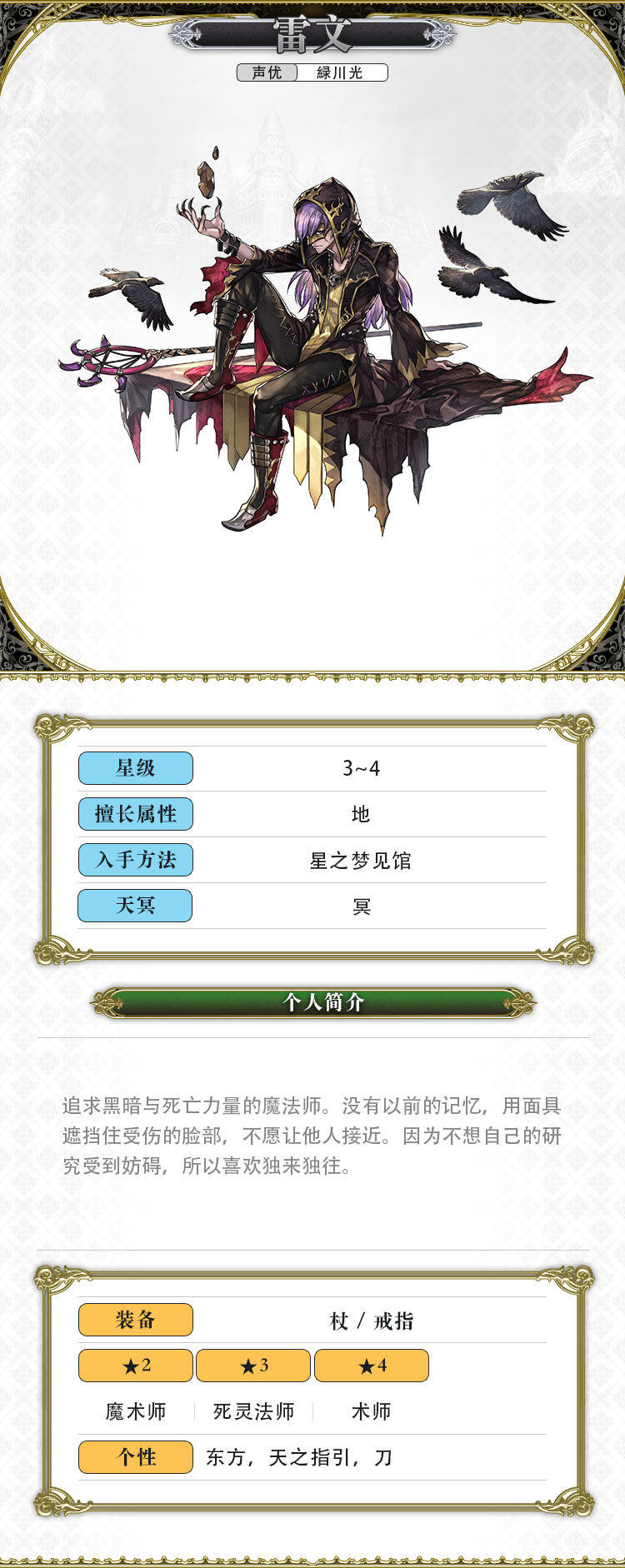 另一个伊甸超越时空的猫雷文这个角色怎么样,雷文作为一个地属性的术士,搭配上他帅气的外表就给人一种非常强悍的感觉,那么这个角色的实力到底怎么样呢?很多小伙伴对这方面的内容还不是很了解,为此,小编特地为大家整理了这些内容,一起往下看看吧!雷文人物属性一览换阵咏唱:LV1 - 【让你死个痛快......!】给予敌方全体全属性耐性下降15%(1回合)LV2 - 【感受一下真正的恐怖吧!】给予敌方全体全属性