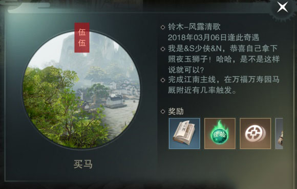 一梦江湖买马奇遇是需要玩家在完成江南地图的主线任务后触发的,很多玩家都不知道相关地点和流程怎么样,今天小编就带来了一梦江湖买马奇遇攻略,一起来看看吧! 一梦江湖买马奇遇攻略 奇遇:买马 地点:万福万寿园马厩 NPC:指定地点 触发条件:完成江