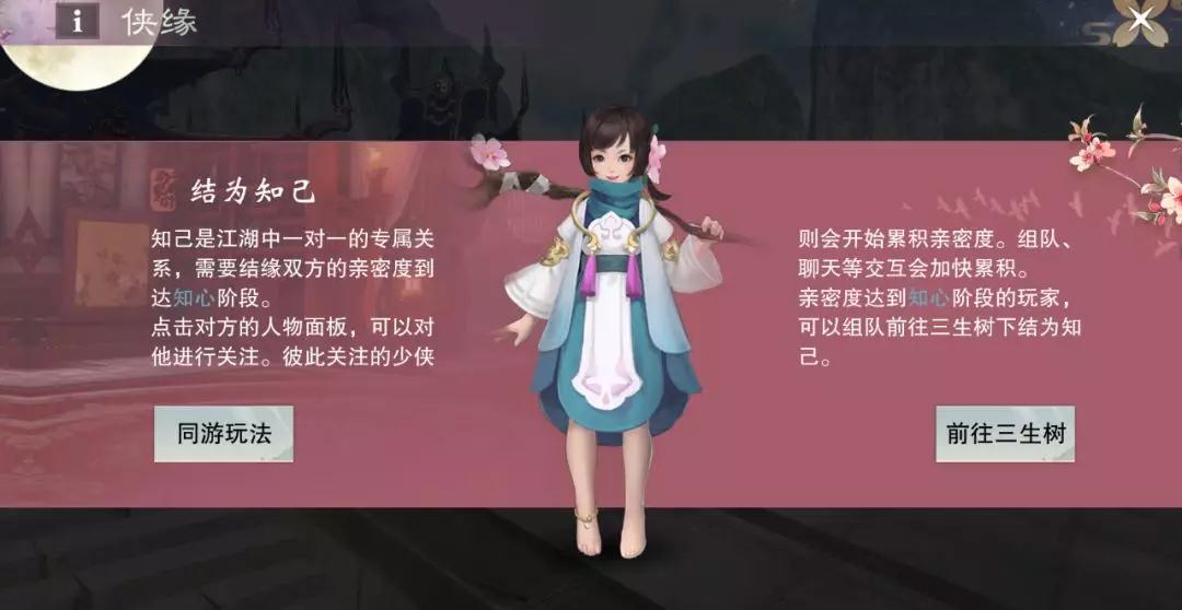 《一梦江湖》怎么结为知己?结为知己的玩家,可以在侠缘界面的同游中,查看侠缘专属的玩法。下面小编就为玩家带来《一梦江湖》结为知己方法,一起来看看吧。 《一梦江湖》结为知己方法介绍 要求结为知己的玩家等级达到60级 1.等级达到60级 2.互相关注