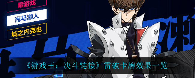 游戏王决斗链接即将在1月1日上线迷你卡盒圣洁光耀卡盒。那么其中雷破效果怎么样,很多小伙伴对这方面的内容还不是很了解,为此,小编特地为大家整理了这些内容,一起往下看看吧! 《游戏王:决斗链接》雷破卡牌效果一览「雷破」丢弃一张手牌,选择场上存在的一张卡为对象发动,破坏该卡牌。发动的时机非常自由,只要事先覆盖好此卡,就可在最恰当的时机破坏对手的关键卡! 喜欢小编为您带来的游戏王:决斗链接内容吗?希望可以